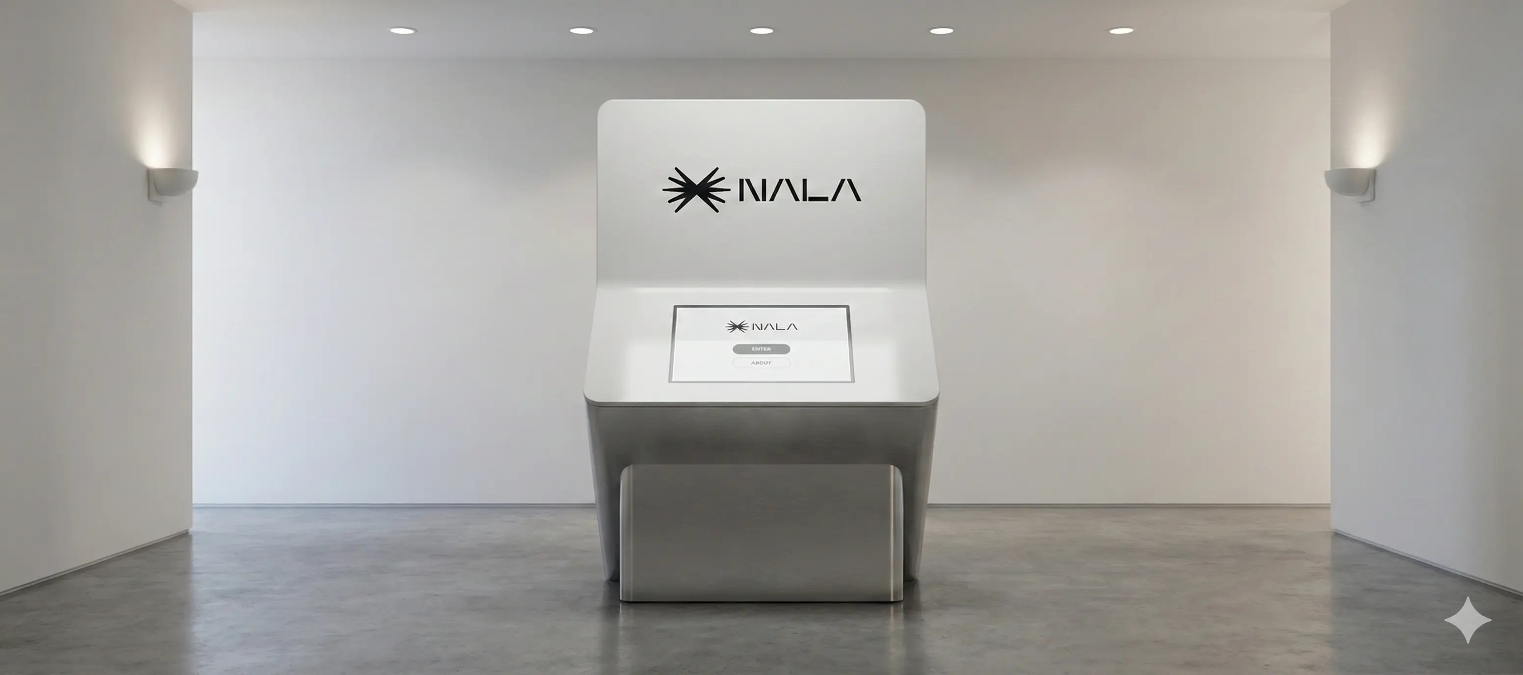 Nala의 'N'을 형상화하되, 단순한 알파벳이 아닌 '서로 다른 두 차원이 만나는 접점'으로 디자인했습니다. 뫼비우스의 띠처럼 끊어지지 않고 이어지는 라인은 현실과 가상의 경계가 허물어짐을 상징합니다. 특히 우상향 하는 곡선 마감은 스타트업의 성장 가능성을 시각적으로 암시합니다.